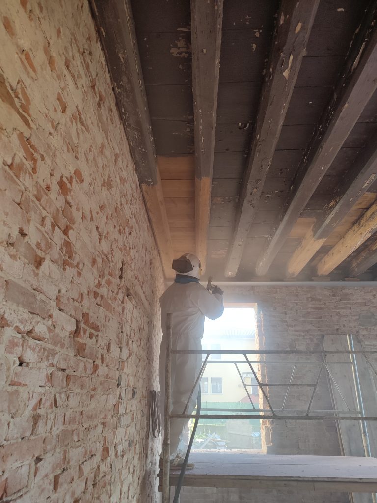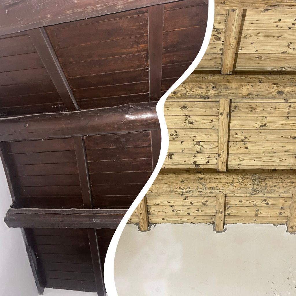 La sabbiatura di tetti, perline, solai, casette e baite è spesso scelta per sverniciare queste superfici grazie alla sua precisione, rapidità e durata nel tempo. Viene utilizzata per cambiare colore o riverniciare il legno, per rinnovare superfici invecchiate o annerite, oppure — con specifiche regolazioni e inerti dedicati — per ottenere un effetto spazzolato o a venatura a vista, molto richiesto nelle zone montane.